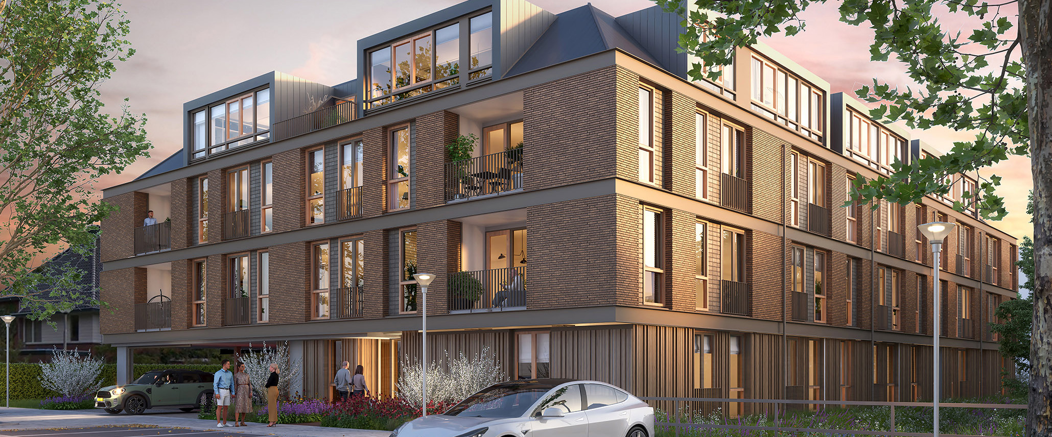Elk appartement beschikt over een lichte, riante woonkamer en twee of drie royale slaapkamers, perfect voor een thuiswerkplek, hobbyruimte of voor logees. De moderne badkamer is uitgerust met een inloopdouche, terwijl de keuken met hoogwaardige apparatuur van koken een plezier maakt. Ruimte genoeg om gezellig samen een hapje te eten of te genieten met vrienden.